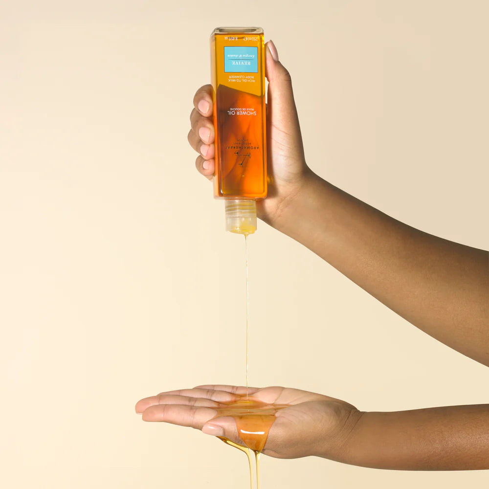 دلّك الزيت على البشرة، ثم نظّف الجسم بعد أن يتحول إلى حليب منظف.